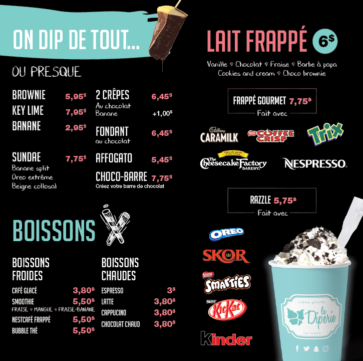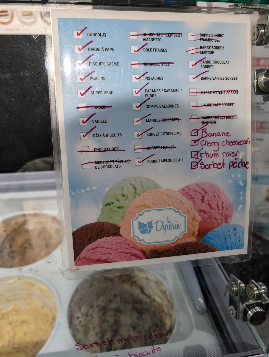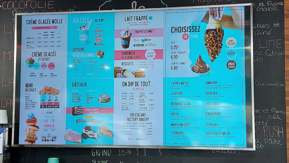 Delicious and fun dipped ice creams! There are a few la diperies all over Montreal and I believe this one is a newer one in the area. The servers are nice. Keep in mind it does get quite busy so make sure to prepare for that. I highly recommend their Oreo dip. It’s so good! Also their tiny size is still really large! They do not skimp our on you. Great ice cream!